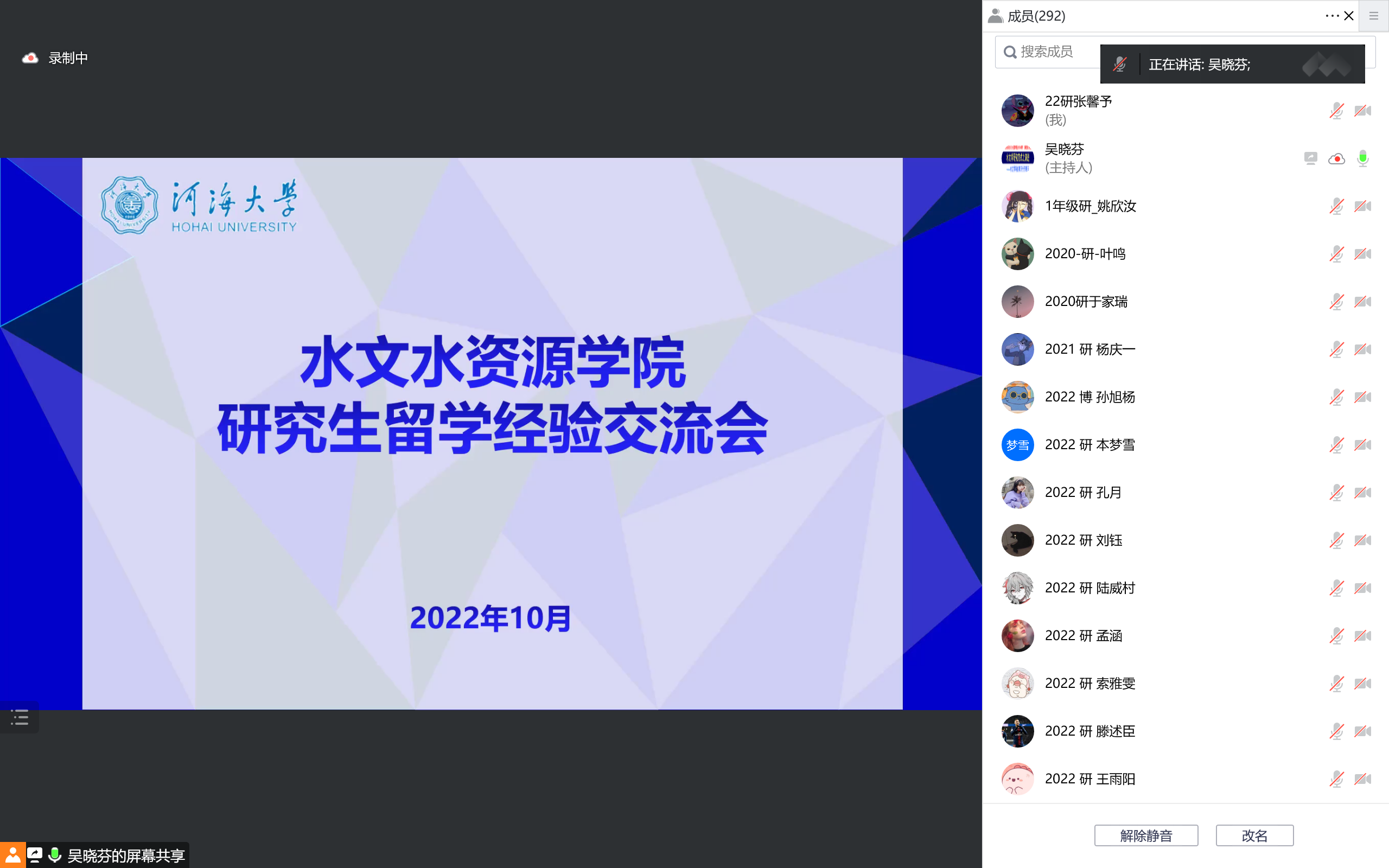 10月23日晚,妖精视频 以线上会议形式组织开展研究生留学经验交流会。本次会议邀请了捷克理工大学的博士生李泰霖、荷兰乌特勒支大学的博士生唐乾景以及德国海德堡大学的博士生王孟浩三位优秀学长分享经验,会议由研究生辅导员吴晓芬老师主持,学院各年级本科生及研究生共300余名同学参加了此次活动。