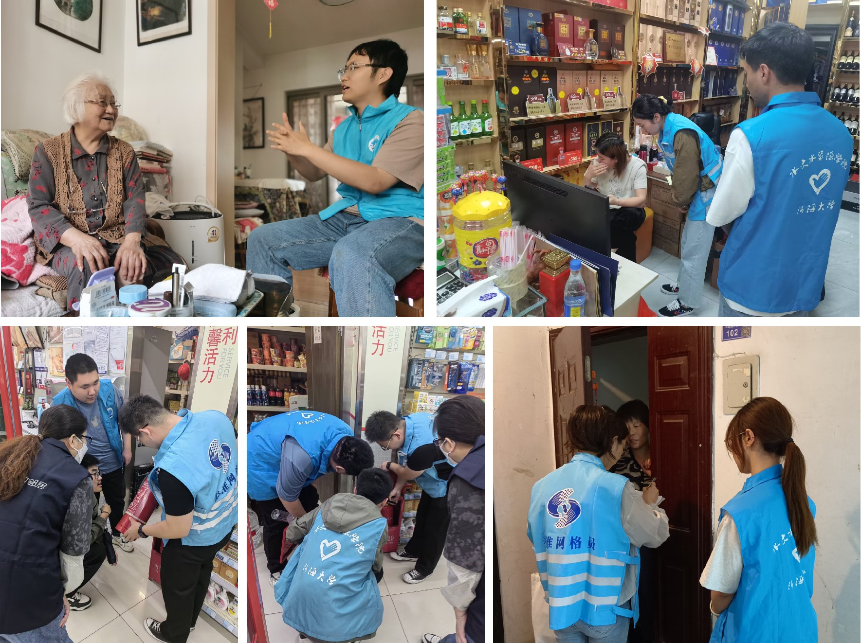 随后,网格员对志愿者们进行了现场培训,志愿者们分为5个小组分别进行:孤寡老人探访、社区沿街店铺圈圈检查、“飞线”充电住户进行走访、宣讲和引导以及发放发入户联系卡等工作。