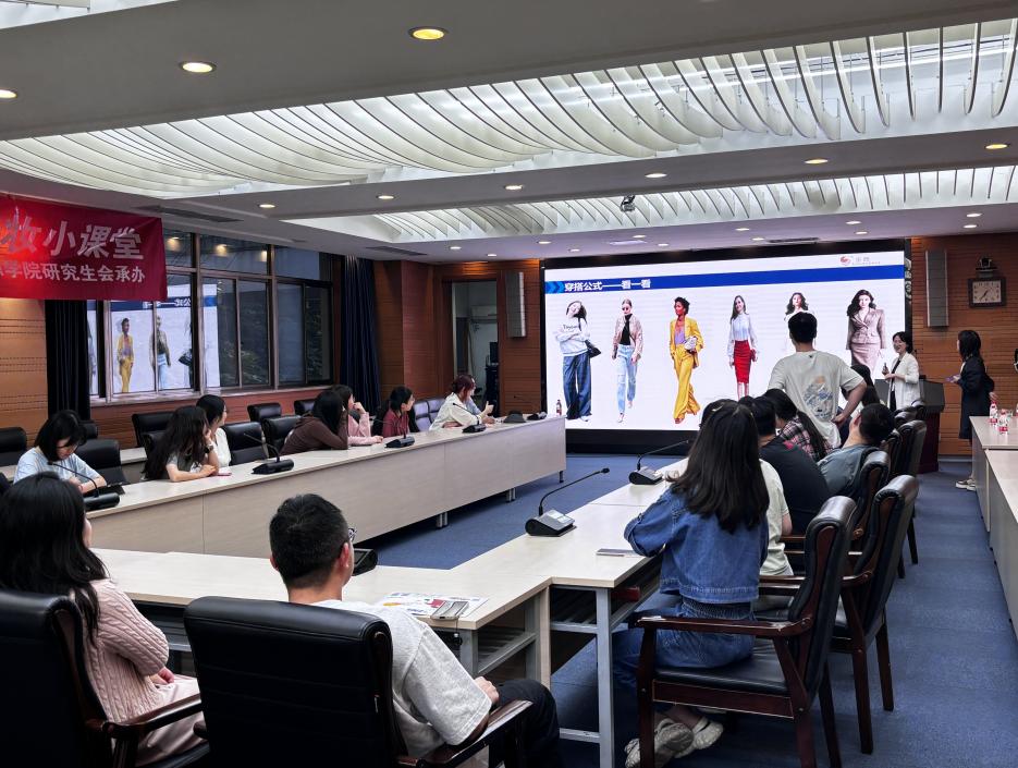魏宇佳老师首先通过简单的互动让大家初步了解面试职场穿搭雷区,然后从色彩搭配和整体搭配思路等方面深入浅出地讲解了面试穿搭技巧,并结合不同职业需求和面试场景,详细分享了如何通过色彩和服饰提升整体形象。现场实战演练环节,同学们对魏老师和热心同学提供的面试服装进行现场搭配和试穿,并获得了老师的专业点评和提升建议,在场同学无不受益匪浅。