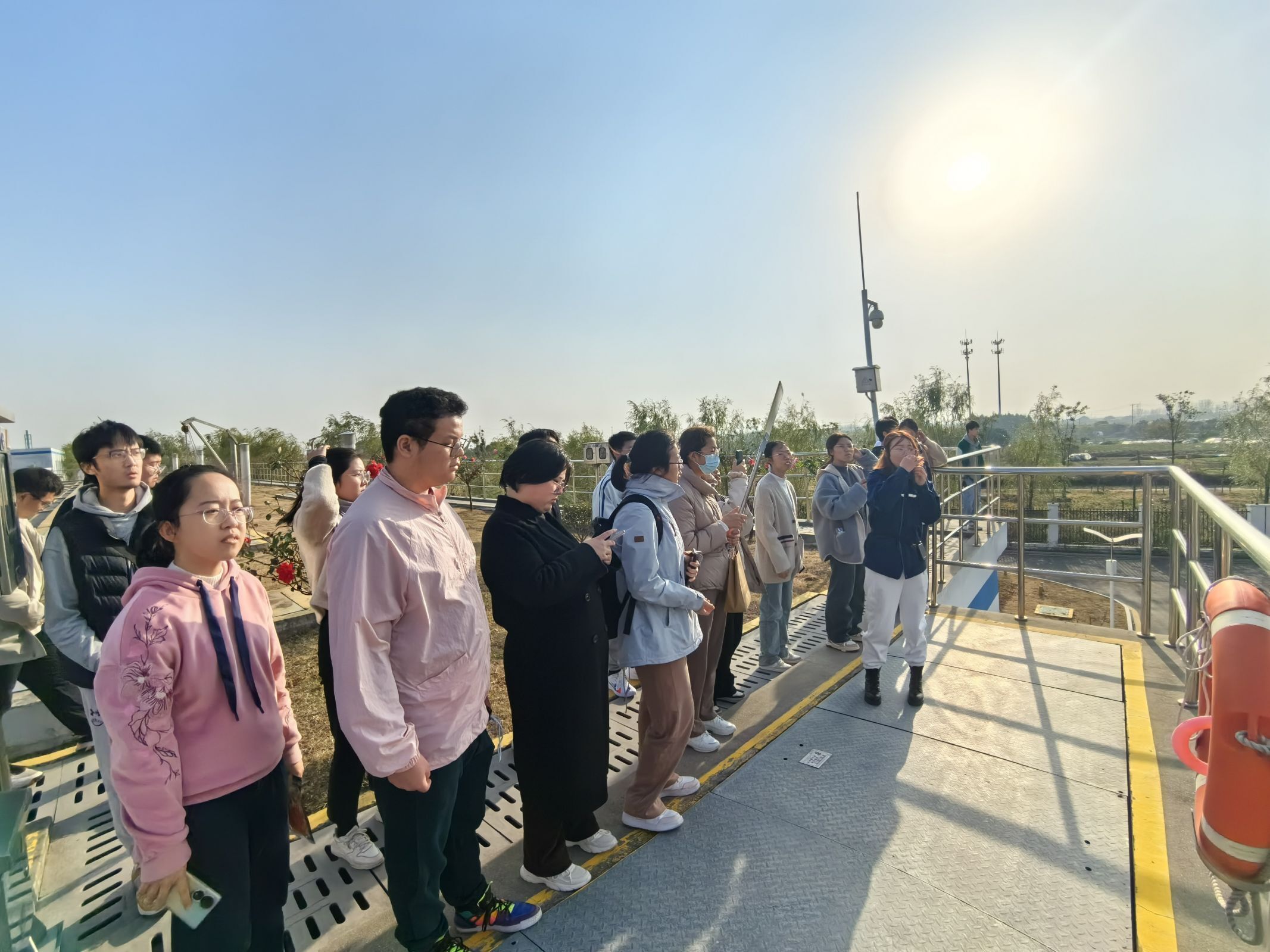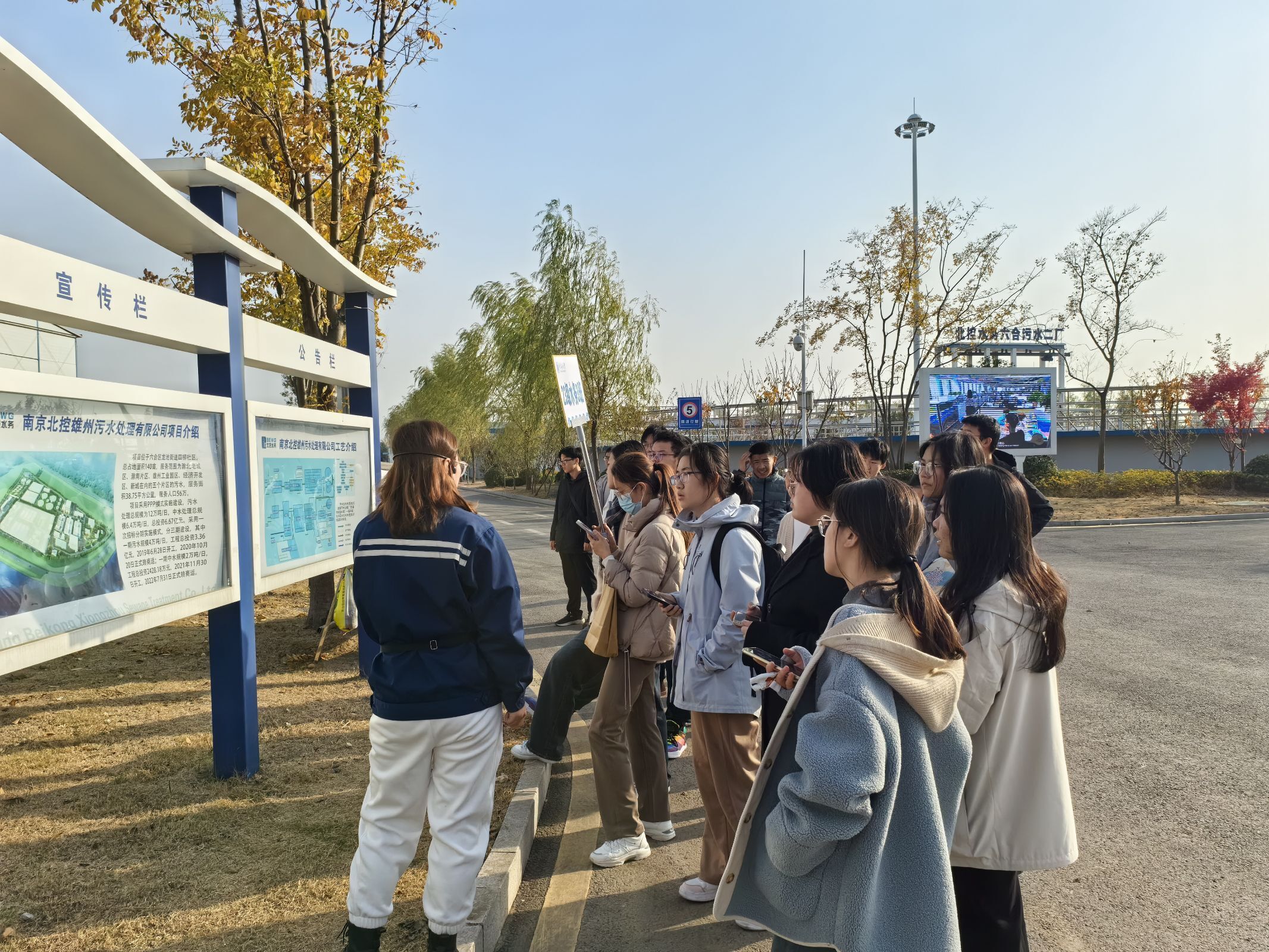 南京北控雄州污水处理有限公司综合部李艳一行热情接待了同学们,并详细介绍了公司和厂区概况,生产处理流程。李艳一行带同学们实地参观了粗格栅、细格栅、生化池、二沉池、脱泥车间、高效池、化验室、中控室等处理环节,仔细讲解了各环节用途和处理机制。同学们表示,通过实地参观熟悉了解了污水处理厂的运营模式、工艺流程及环保理念。