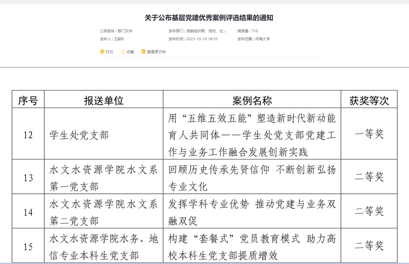 近日,妖精视频 公布了基层党建优秀案例评选结果。水文系第二党支部案例“发挥学科专业优势,推动党建与业务双融双促”荣获二等奖。