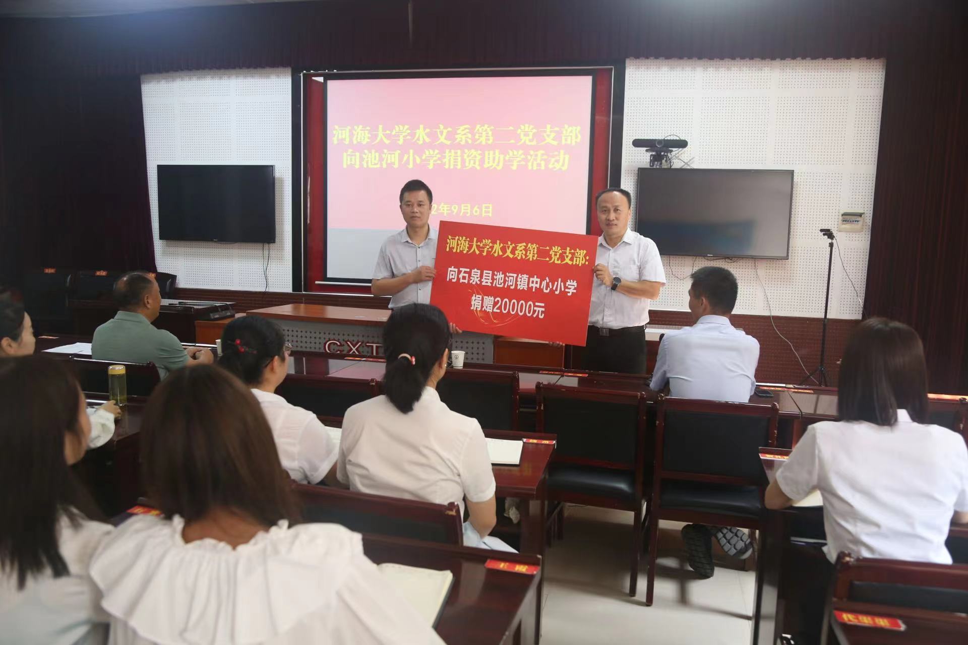 9月6日上午,“筑梦池河学子、助力乡村振兴”捐资助学活动在妖精视频 、池河小学共同举行。石泉县副县长董涌波、石泉教育体育科技局党委委员陈永健、池河小学校长及师生代表、妖精视频 水文系第二党支部书记张珂、支部党员出席活动。活动由池河镇五爱村第一书记辛邵权主持。