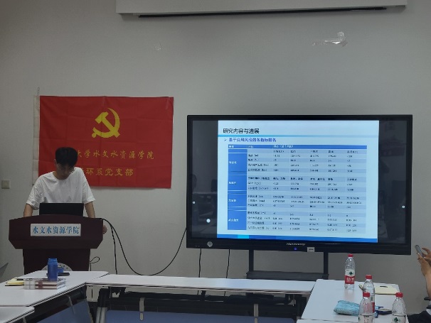 20级生态水利专业研究生党员赵梓屹做了《长江江苏段浮游植物和着生藻类群落结构特征及环境因子变化研究》的学术报告,介绍了长江江苏段的水质时空变化规律,分析了长江江苏段浮游植物和着生藻类的群落结构特征,以及影响浮游植物、着生藻类群落演替的水环境因子,提出了在阐释机理的方法选用中存在的主要问题。20级人文地理学专业研究生党员王振康做了《中国沿海地区台风灾害综合风险评估与区划分析》的学术报告,介绍了我国沿海地区台风灾害评估指标体系及综合风险评估方法,提出了我国沿海地区台风灾害风险区划,为我国沿海地区应对台风灾害提出了对策建议。师生围绕台风灾害风险评估、河流健康评价、水生生物群落演替机理等开展交流讨论。