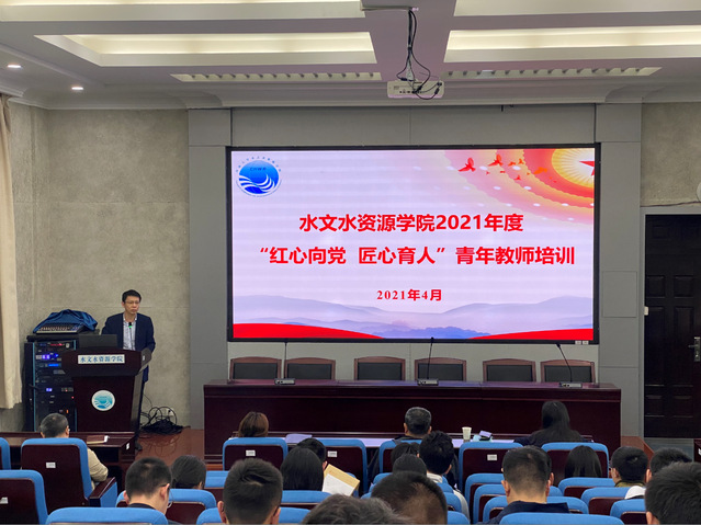 开班仪式上,杨涛院长发表讲话。他指出,青年教师是学院的未来,是学院发展的生力军,是学院发展源源不断的强大力量。他希望青年教师做到三对标一规划,既要脚踏实地又要仰望星空,要充分发挥自己的主观能动性,在水文前辈优秀传统的引领下,做到青出于蓝而胜于蓝,实现个人的全面发展,推进学院的高质量发展。孔祥冬书记主持了开班仪式,对学院开展此次培训的背景意义、内容及形式做了全面介绍,并就开展好培训提出要求。她希望青年教师提高思想认识,加强理论武装,坚持学做结合,全面提升自身能力。学校党史学习教育校内第五巡回指导组组长万国彤列席指导活动,学院领导班子成员以及30多名青年教师参加了培训开班仪式。