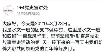 为在全年级营造党史学习的良好氛围,激发广大团员同学学习党史的积极性,2020级各支部纷纷开展“党史每日一讲”活动,通过QQ空间、QQ群等方式向各位团员同学分享百年来党的重大时刻和重要历史事件。同时,各支部还通过接力的形式,在团员间传递“讲党史”接力棒,助力团员同学们传承红色基因,厚植爱国情怀。
