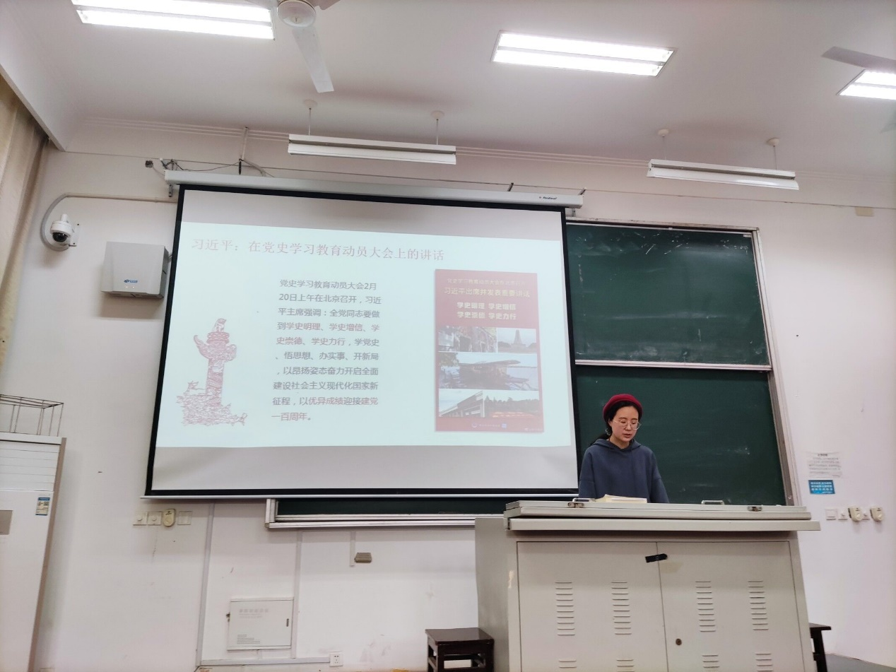 会议分三部分进行。首先,支部书记韦语涵老师、组织委员纪璐带领党员同学们认真学习了习近平总书记在党史学习教育动员大会上的重要讲话精神。随后,钱天翔同学和郑靓同学带领同学们学习了习近平总书记在脱贫攻坚总结表彰大会上的讲话精神。通过学习,党员同学们深刻了解到了在两个一百年交汇的重要历史时刻开展党史学习教育的意义和重要性,同时也更加感受到党员前辈们奋斗的不易,深刻体会到我国目前所取得的成就都是全党全国各族人民靠勤劳、智慧、勇气奋斗出来的,更加加深了党员同学们“学党史、跟党走”的决心和信心。最后,支部书记韦语涵老师就支部下一步开展党史学习教育,举办“讲述闻天故事,传承革命精神”主题党日活动等工作进行了安排。