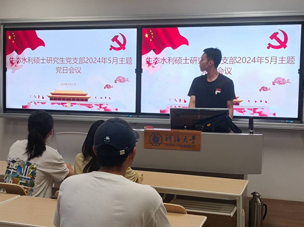 为传达学习习近平总书记关于党纪学习教育的重要讲话重要指示精神,进一步加强党的纪律建设,提高党员的廉洁自律意识,5月27日,生态水利专业硕士研究生党支部以学习贯彻《中国共产党纪律处分条例》(以下简称《条例》)为重点开展集中学习。活动由支部书记陆玟主持,支部全体成员参加。