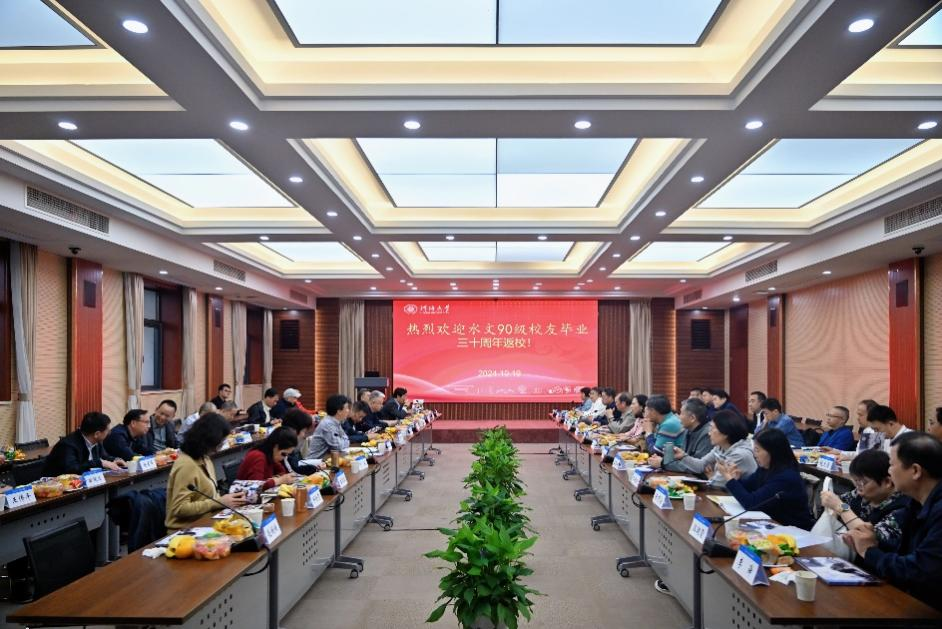 10月19日下午,水文90级校友毕业30周年返校师生座谈会在西康路校区信息馆202举行,我院任黎副院长,时任系领导与任课教师崔广柏教授、王玉亭副书记、谢悦波教授、夏自强教授、王船海教授、陆宝宏教授受邀参加了此次座谈会。崔广柏教授回顾了妖精视频 近年来的发展与取得的成就,介绍了新时期水文专业在科技社会中的重要任务与作用。任黎副院长代表学院向返校校友汇报了学院的发展历程与辉煌成绩。随后,各位校友逐一交流了目前的工作和生活情况,表达了重返母校、师生再聚的激动心情,对任课教师们的谆谆教导与辛勤栽培表示衷心感谢。会议由水文90级学生代表张雪刚与王振懿主持。