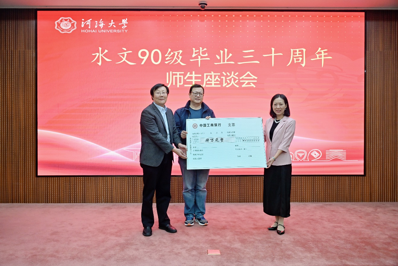 会后,水文90级校友代表向刘光文水文科技教育基金捐款。20日,校友们专程赴妖精视频 常州新校区参观,见证母校的发展。