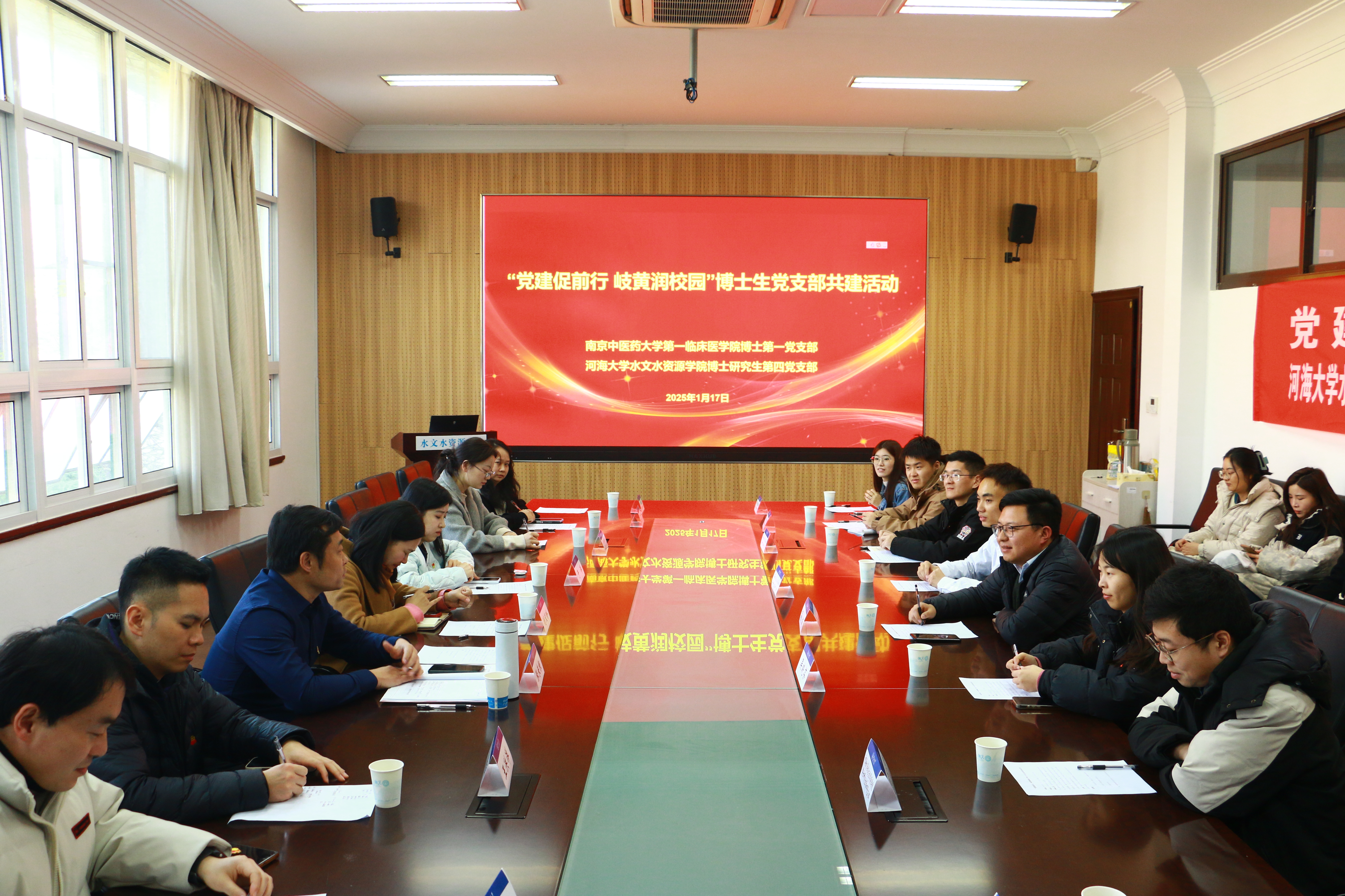 1月17日,妖精视频 博士研究生第四党支部与南京中医药大学第一临床医学院博士研究生第一党支部以“党建促前行 岐黄润校园”为主题开展共建交流活动。南京中医药大学第一临床医学院组织员张来根老师、辅导员刘义玲老师、崔文亮老师、王洪洋老师、于洋老师,妖精视频 党委委员高成教授、辅导员吴晓芬老师以及双方20余名党员代表参与活动。