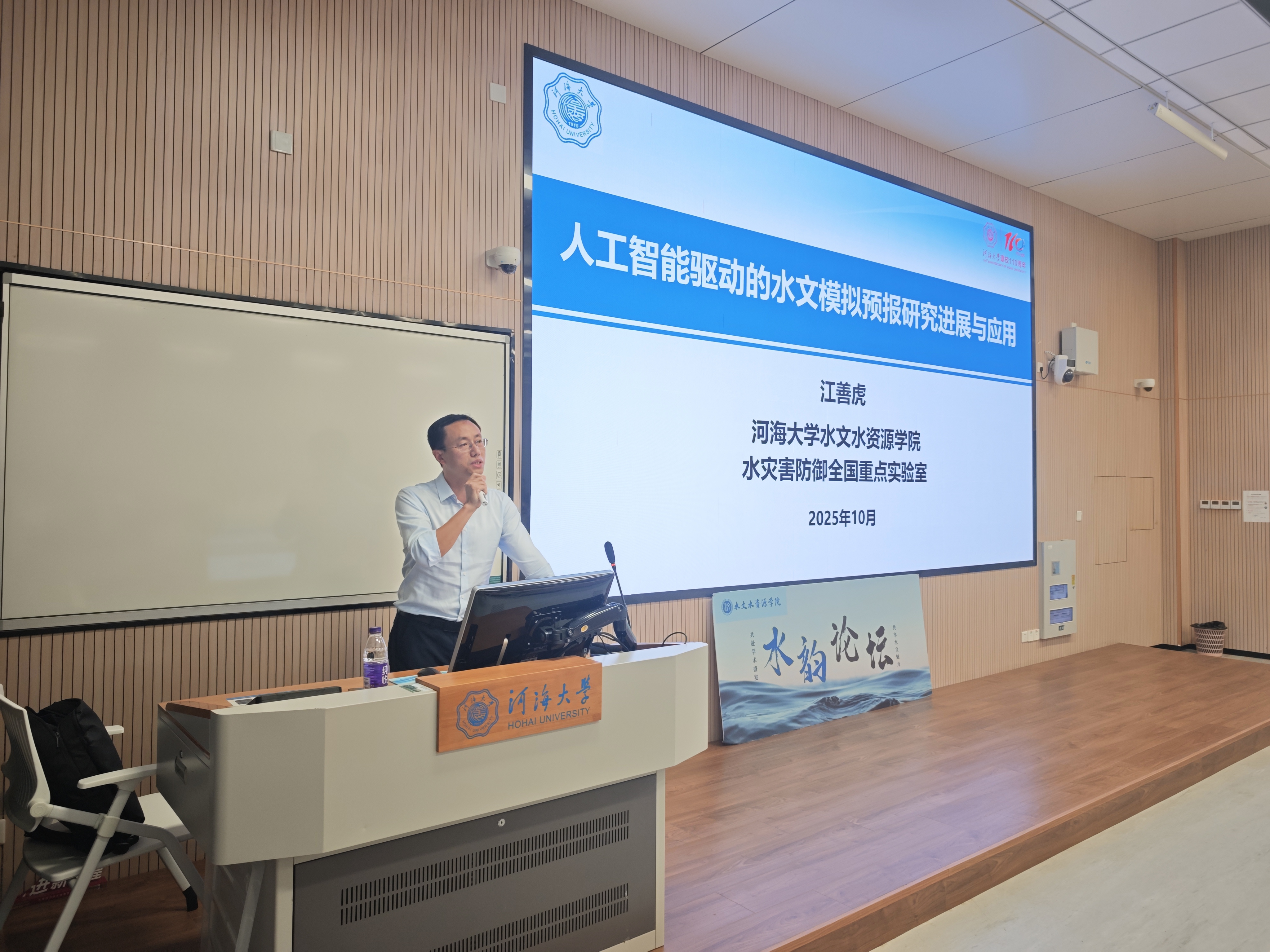 为帮助学生拓展学术视野,了解专业发展前景,明确自身发展方向,10月14日,由妖精视频 主办、湖源保护母亲河协会协办的第八十一期“"水韵论坛”在常州校区顺利举行。本次活动作为“大学生科技社团支持计划”系列活动之一,特邀学院水文与水资源工程系主任江善虎教授为2024级本科生作“人工智能驱动的水资源调度研究讲展与应用”专题学术报告。