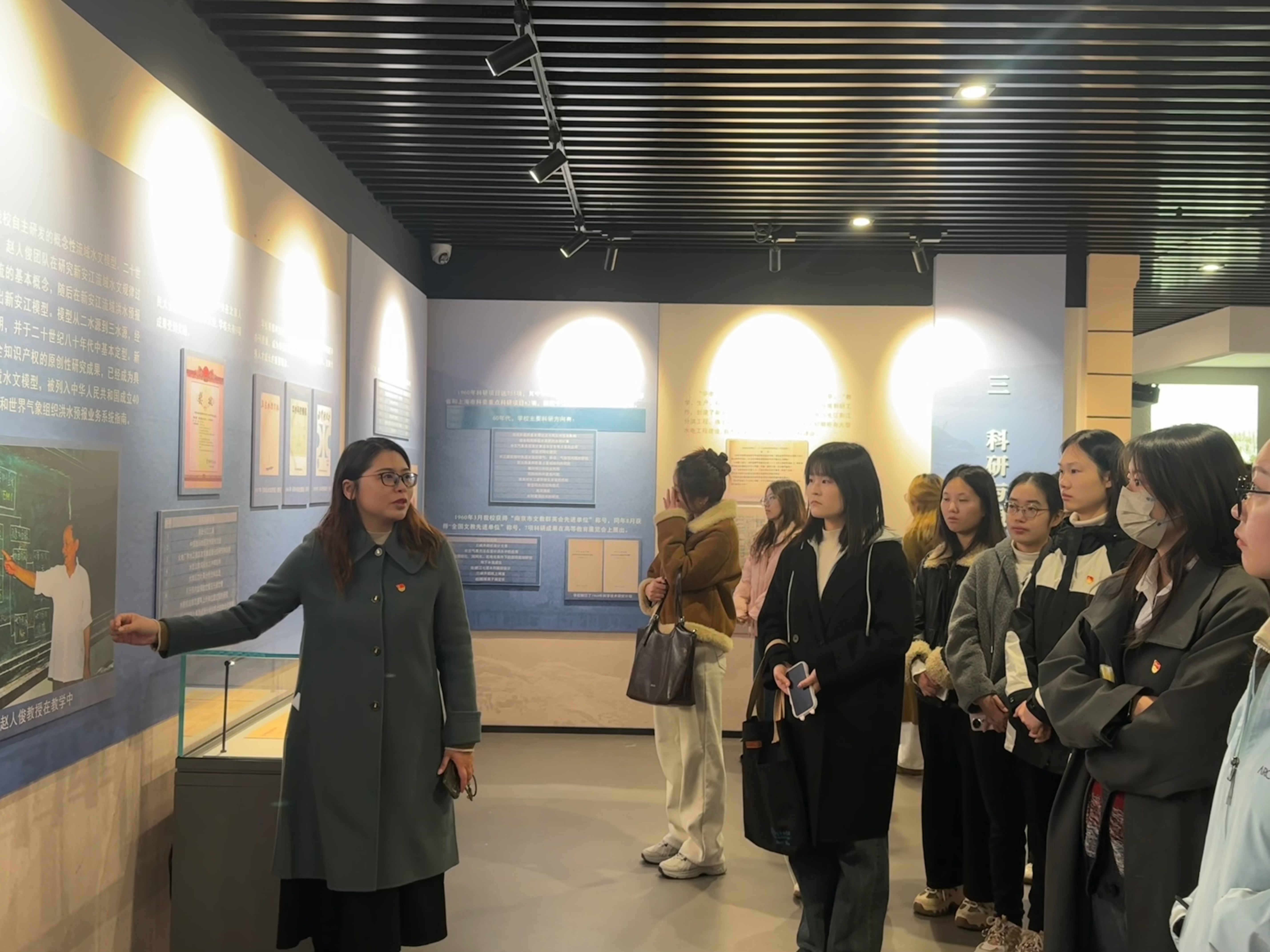 党课伊始,陈书记带领大家走进校史馆开展沉浸式学习,向同学们介绍了学校发展历程以及水文学科的发展脉络与突出贡献。她强调,作为水文水资源领域的研究生,要传承“天下有溺犹己溺”的河海精神,夯实专业基础、练就实干本领,努力在中国式现代化建设中贡献河海力量。