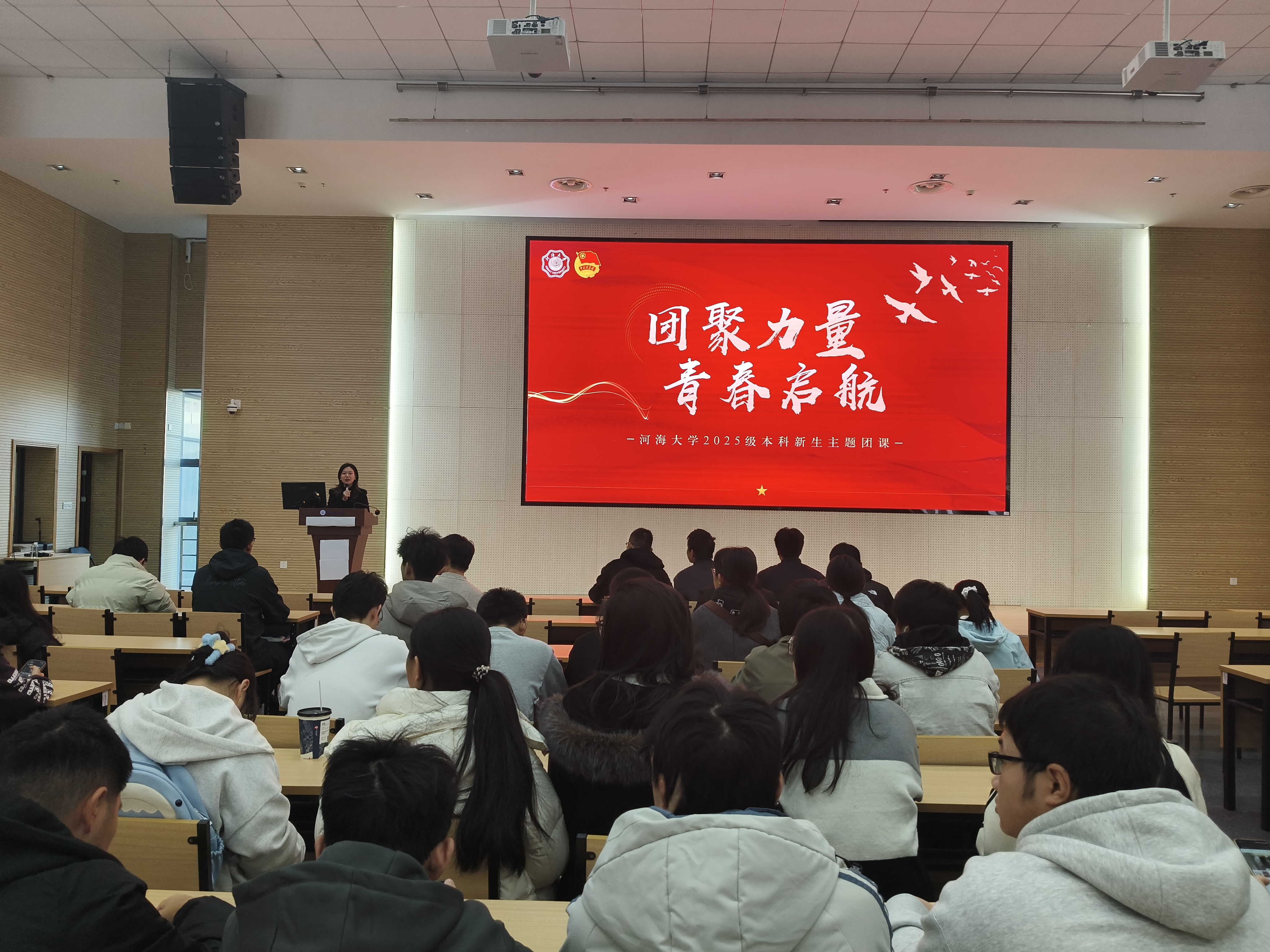 11月28日,学院团委书记林彦老师以“团聚力量,青春起航”为题讲授主题团课。课程以“回望、对标、启航”为主线,系统回溯共青团百年光辉历程,结合鲜活案例深入解读习近平总书记对青年的寄语。林老师结合团章要求,强调团员应严守纪律规矩、规范言行举止,同时立足学院水利特色,详细介绍了为团员成长搭建的各类活动与实践平台。她勉励全体学员将个人理想融入国家水利事业发展大局,传承河海精神,以青春之力为强国建设、民族复兴贡献水文智慧。