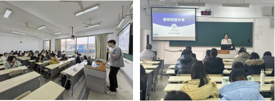 活动现场,2023级硕士研究生王家伟结合自身求职经历,围绕职业目标确立、简历优化、面试技巧等方面进行分享。2022级本科生王欣桐则为有志于深造的同学系统梳理了相关时间节点和注意事项,鼓励大家以积极行动化解焦虑情绪。分享环节后,支部党员与在场同学围绕生涯规划、学习科研等话题展开了深入交流。