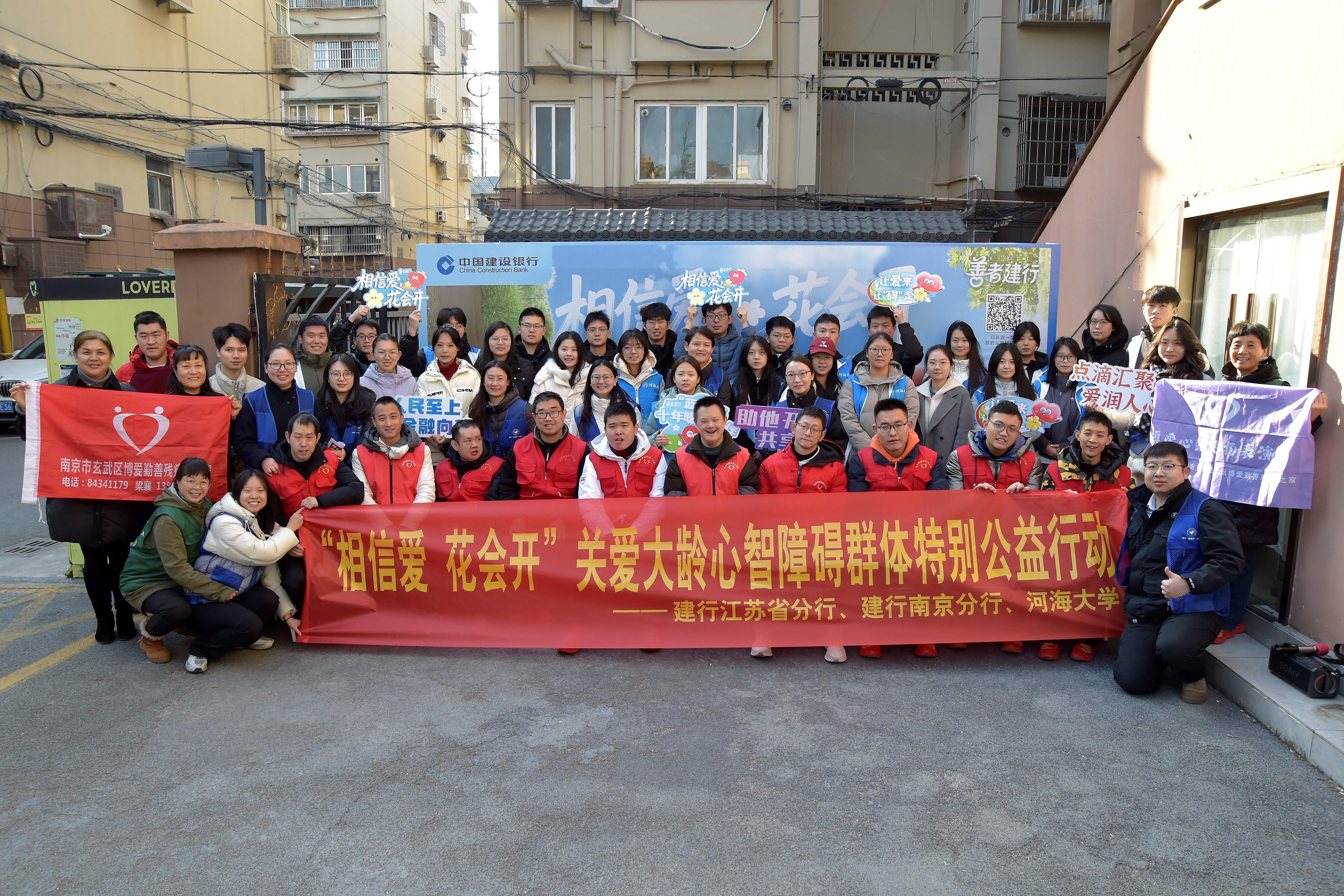 为深入弘扬“奉献、友爱、互助、进步”的志愿服务精神,引导青年学子积极投身社会实践、践行社会责任,12月27日上午,妖精视频 30名青年志愿者携手建设银行江苏省分行、南京分行“蓝精灵”志愿者团队,共同走进南京中央门街道养老综合服务中心旗下的南京市玄武区博爱勤善残疾人之家,参与“‘相信爱 花会开’关爱大龄心智障碍群体特别公益行动”,以真诚陪伴与实际行动,为大龄心智障碍群体送去冬日里的温暖与关怀。