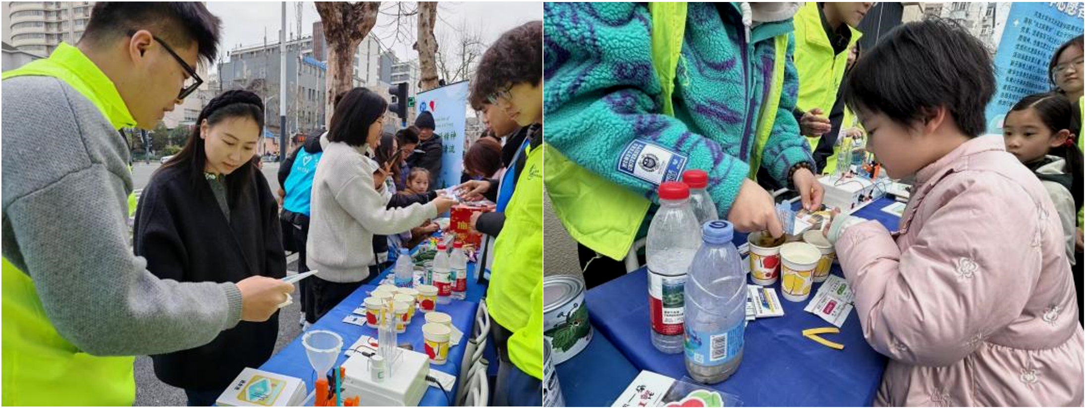 此外,科普实验区深受大家欢迎,pH试纸测水体验让群众亲手检测水样酸碱度,志愿者同步讲解水质与健康、生态的关联;水电解实验、抽水蓄能模型演示,直观展现水的能源价值与绿色储能原理,让大家对水文专业知识有了具象认知。
