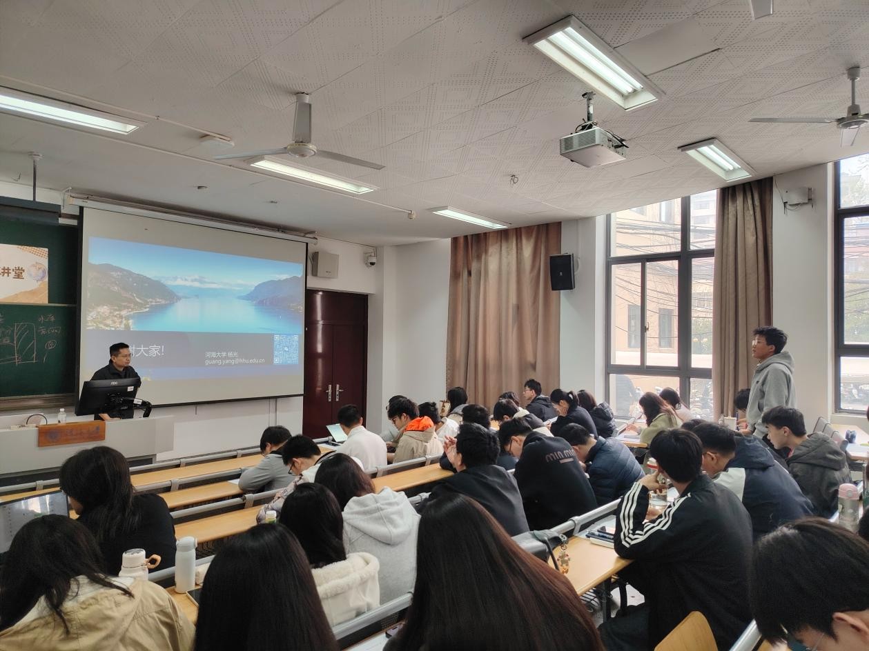 杨光老师以 “人工智能下的水资源调度” 为核心,结合自身在智慧水利与人工智能交叉领域的研究积累与实践感悟,向学子们传递了行业需要技术创新的发展理念。同时,杨老师结合智慧水利发展前沿动态,分享人工智能赋能水资源调度的实际应用案例,让学子们真切感受到前沿技术在保障国家水安全中的重要价值,明晰个人研究方向与行业需求的契合点。