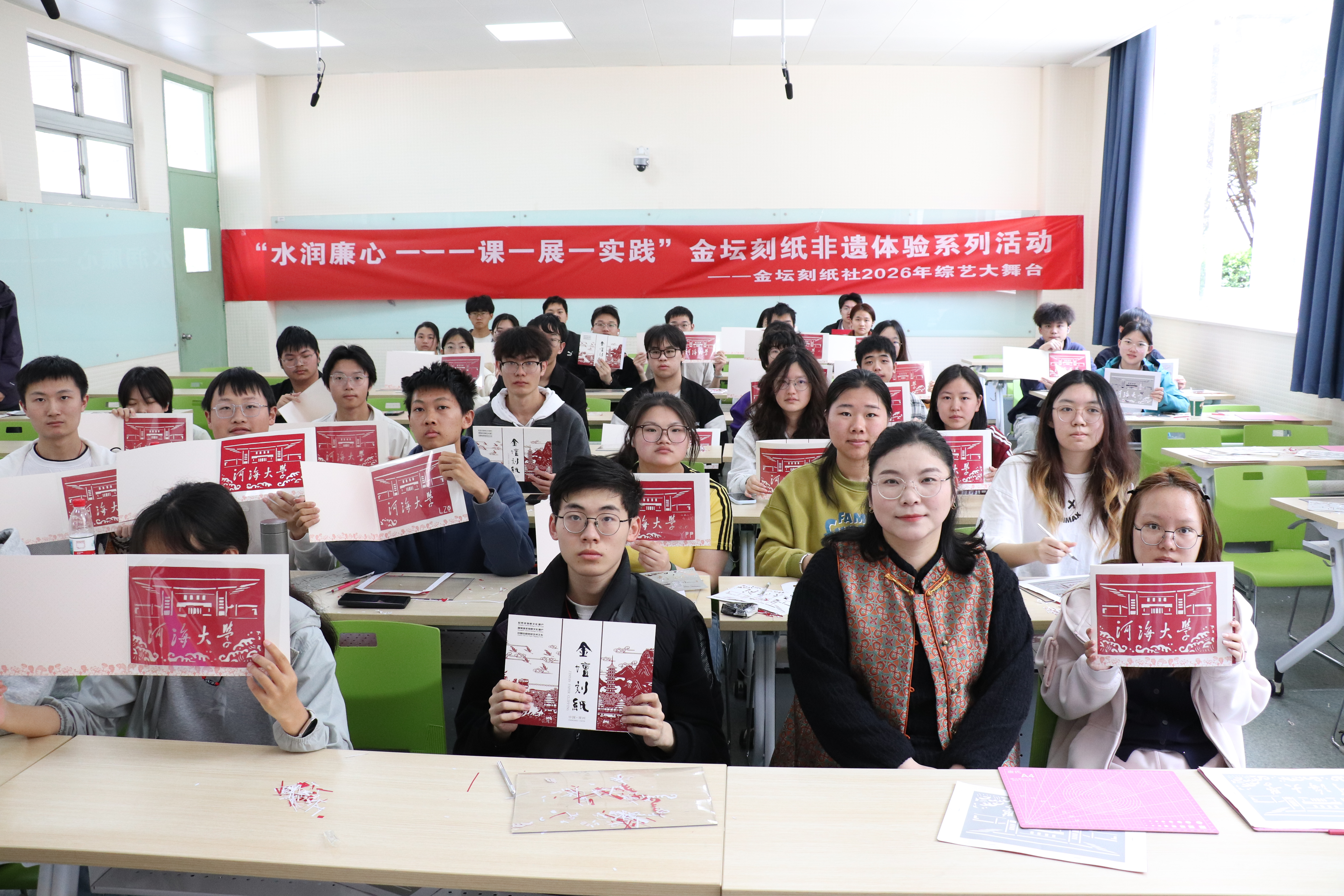 为深入推进学院“健康教育专项工程”中美育工作建设,传承中华优秀传统文化,让青年学子在非遗实践中陶冶情操、涵养心灵,4月25日,妖精视频 “水润廉心——一课一展一实践”金坛刻纸非遗体验活动在江宁校区顺利开展。本次活动特邀金坛刻纸非遗传承人何雅雯老师现场授课,2025级学生踊跃参与。